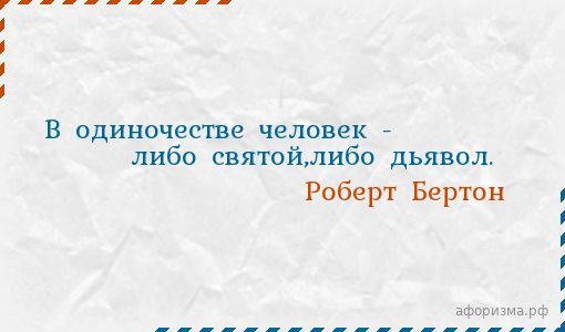 В одиночестве человек - либо святой,либо дьявол.