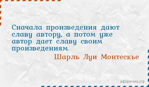 Сначала произведения дают славу автору, а потом уже автор дает славу своим произведениям.