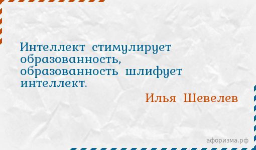 Интеллект стимулирует образованность, образованность шлифует интеллект.
