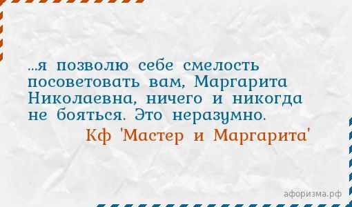 Кф 'Мастер и Маргарита'…я позволю себе смелость посоветовать вам, Маргарита Николаевна, ничего и никогда не бояться. Это неразумно.