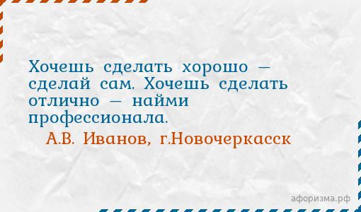 Хочешь сделать хорошо – сделай сам. Хочешь сделать отлично – найми профессионала.