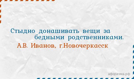 Стыдно донашивать вещи за бедными родственниками.