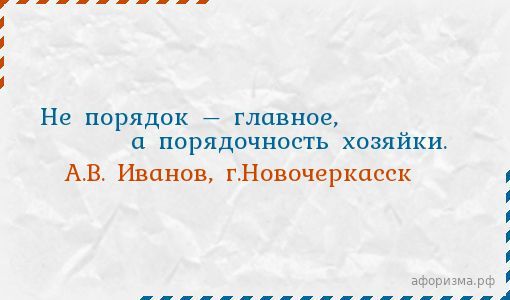 Не порядок – главное, а порядочность хозяйки.