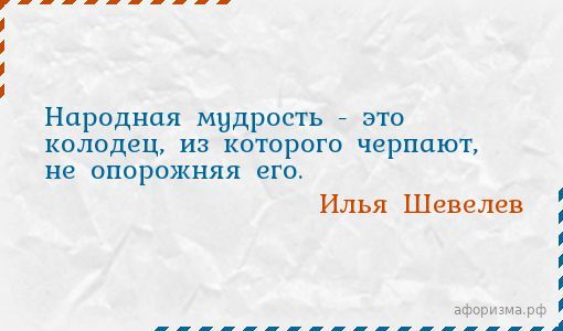 Народная мудрость - это колодец, из которого черпают, не опорожняя его.