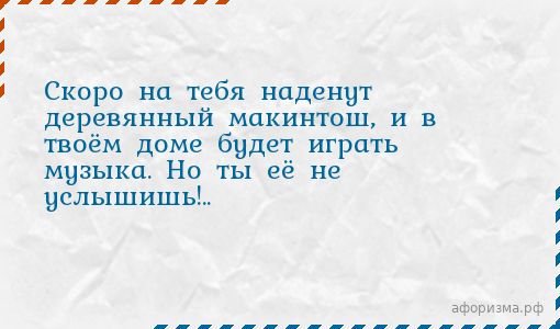 Скоро на тебя наденут деревянный макинтош, и в твоём доме будет играть музыка. Но ты её не услышишь!..