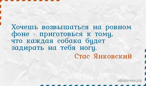 Хочешь возвышаться на ровном фоне - приготовься к тому, что каждая собака будет задирать на тебя ногу.