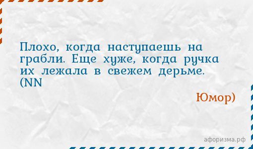 Плохо, когда наступаешь на грабли. Еще хуже, когда ручка их лежала в свежем дерьме. (NN