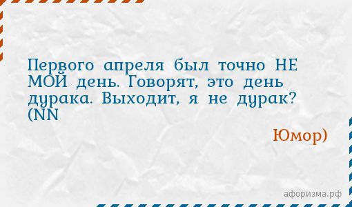 Первого апреля был точно НЕ МОЙ день. Говорят, это день дурака. Выходит, я не дурак? (NN