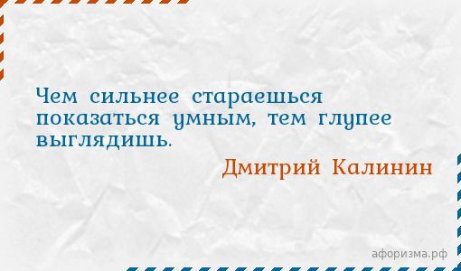 Чем сильнее стараешься показаться умным, тем глупее выглядишь.