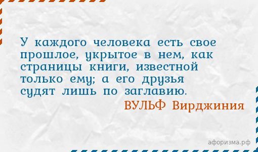 ВУЛЬФ ВирджинияУ каждого человека есть свое прошлое, укрытое в нем, как страницы книги, известной только ему; а его друзья судят лишь по заглавию.