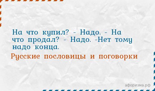 На что купил? - Надо. - На что продал? - Надо. -Нет тому надо конца.
