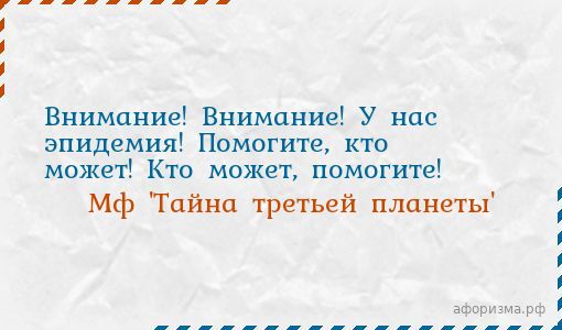 Внимание! Внимание! У нас эпидемия! Помогите, кто может! Кто может, помогите!