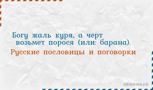 Богу жаль куря, а черт возьмет порося (или: барана).