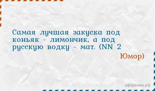 Самая лучшая закуска под коньяк - лимончик, а под русскую водку - мат. (NN 2