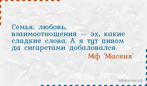 Семья, любовь, взаимоотношения — эх, какие сладкие слова. А я тут пивом да сигаретами добаловался.