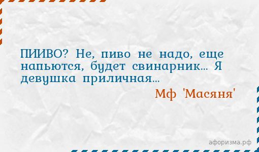 ПИИВО? Не, пиво не надо, еще напьются, будет свинарник… Я девушка приличная…