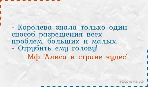 Мф 'Алиса в стране чудес'- Королева знала только один способ разрешения всех проблем, больших и малых. - Отрубить ему голову!
