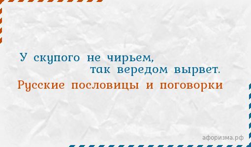 У скупого не чирьем, так вередом вырвет.