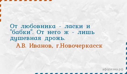 От любовника - ласки и "бабки". От него ж - лишь душевная дрожь.