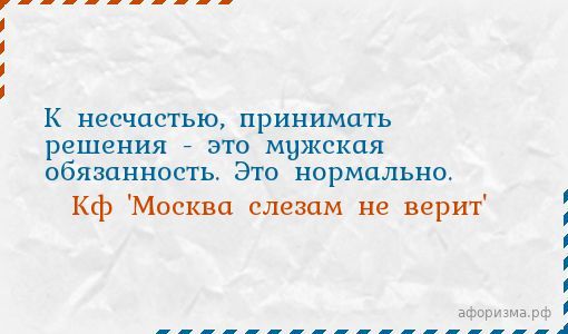 К несчастью, принимать решения - это мужская обязанность. Это нормально.