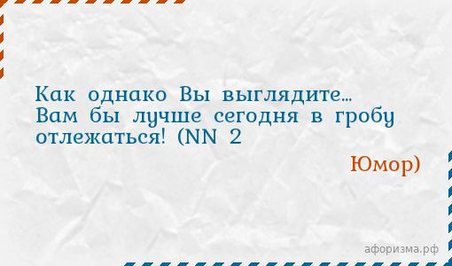 Как однако Вы выглядите... Вам бы лучше сегодня в гробу отлежаться! (NN 2