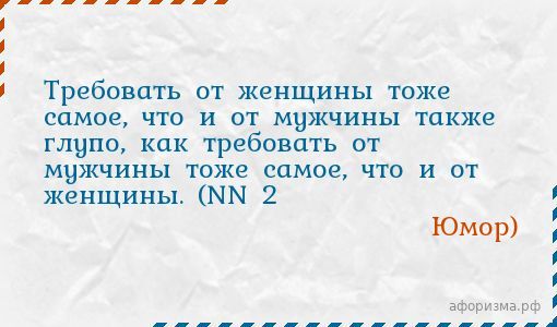 Юмор)Требовать от женщины тоже самое, что и от мужчины также глупо, как требовать от мужчины тоже самое, что и от женщины. (NN 2