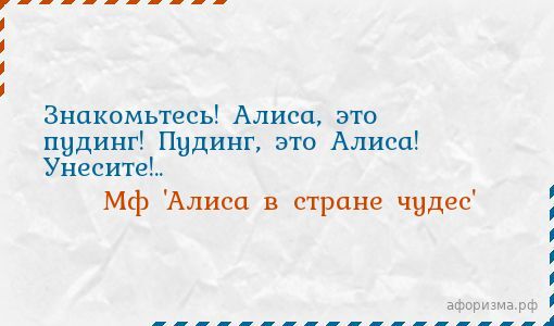 Знакомьтесь! Алиса, это пудинг! Пудинг, это Алиса! Унесите!..