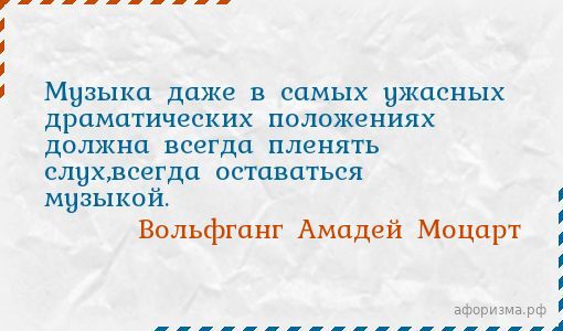 Вольфганг Амадей МоцартМузыка даже в самых ужасных драматических положениях должна всегда пленять слух,всегда оставаться музыкой.