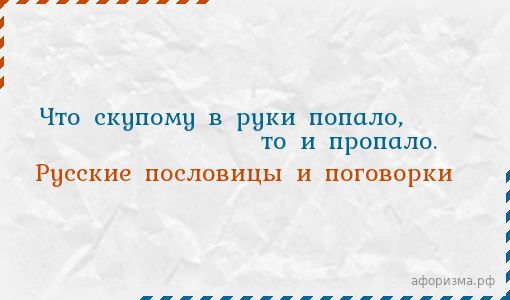 Что скупому в руки попало, то и пропало.