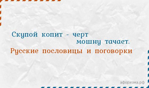 Скупой копит - черт мошну тачает.