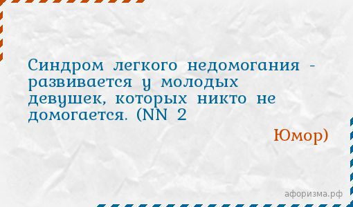 Синдром легкого недомогания - развивается у молодых девушек, которых никто не домогается. (NN 2