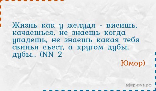 Юмор)Жизнь как у желудя - висишь, качаешься, не знаешь когда упадешь, не знаешь какая тебя свинья съест, а кругом дубы, дубы... (NN 2