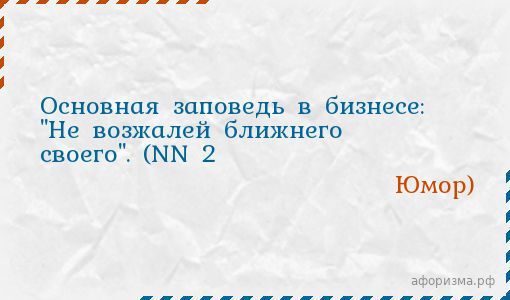 Основная заповедь в бизнесе: "Не возжалей ближнего своего". (NN 2