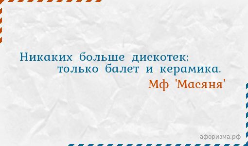 Никаких больше дискотек: только балет и керамика.