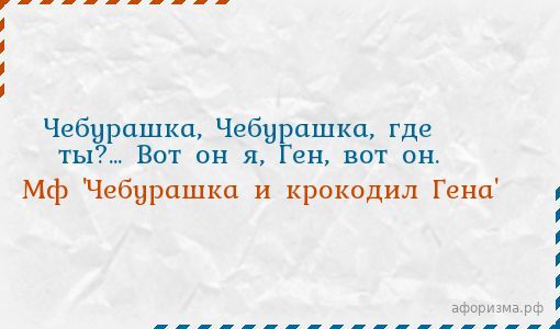 Чебурашка, Чебурашка, где ты?... Вот он я, Ген, вот он.
