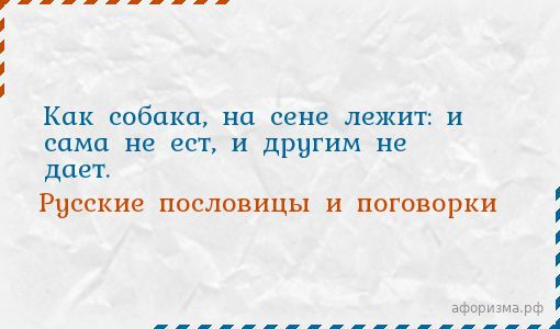 Как собака, на сене лежит: и сама не ест, и другим не дает.