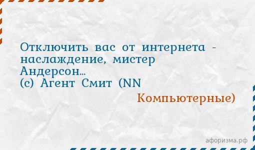 Отключить вас от интернета - наслаждение, мистер Андерсон... (с) Агент Смит (NN