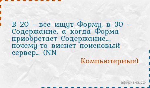 Компьютерные)В 20 - все ищут Форму, в 30 - Содержание, а когда Форма приобретает Содержание,... почему-то виснет поисковый сервер... (NN