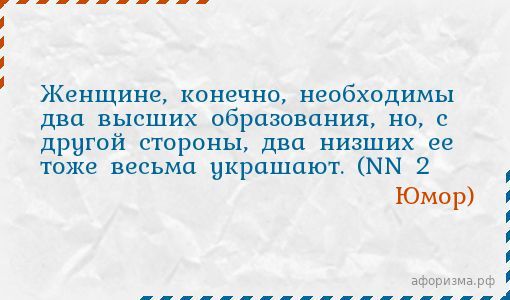 Женщине, конечно, необходимы два высших образования, но, с другой стороны, два низших ее тоже весьма украшают. (NN 2