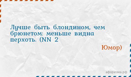 Лучше быть блондином, чем брюнетом: меньше видна перхоть. (NN 2