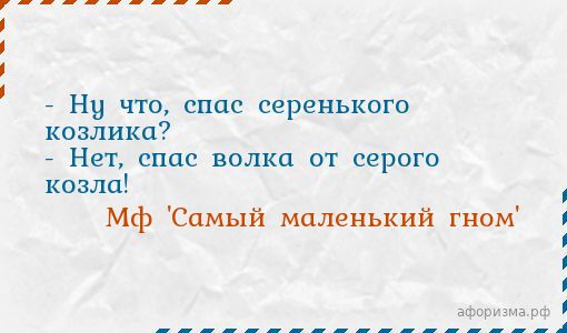 - Ну что, спас серенького козлика? - Нет, спас волка от серого козла!