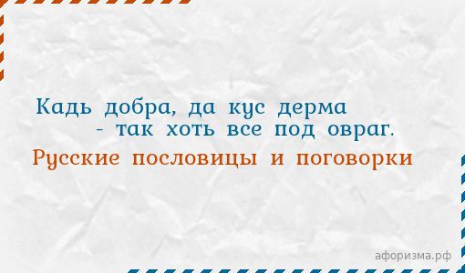 Кадь добра, да кус дерма - так хоть все под овраг.