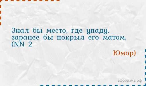 Знал бы место, где упаду, заранее бы покрыл его матом. (NN 2