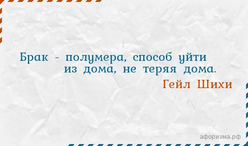 Брак - полумера, способ уйти из дома, не теряя дома.