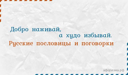 Добро наживай, а худо избывай.