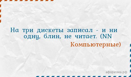 На три дискеты записал - и ни одну, блин, не читает. (NN