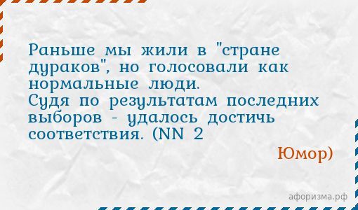 Юмор)Раньше мы жили в "стране дураков", но голосовали как нормальные люди. Судя по результатам последних выборов - удалось достичь соответствия. (NN 2