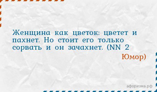 Женщина как цветок: цветет и пахнет. Но стоит его только сорвать и он зачахнет. (NN 2